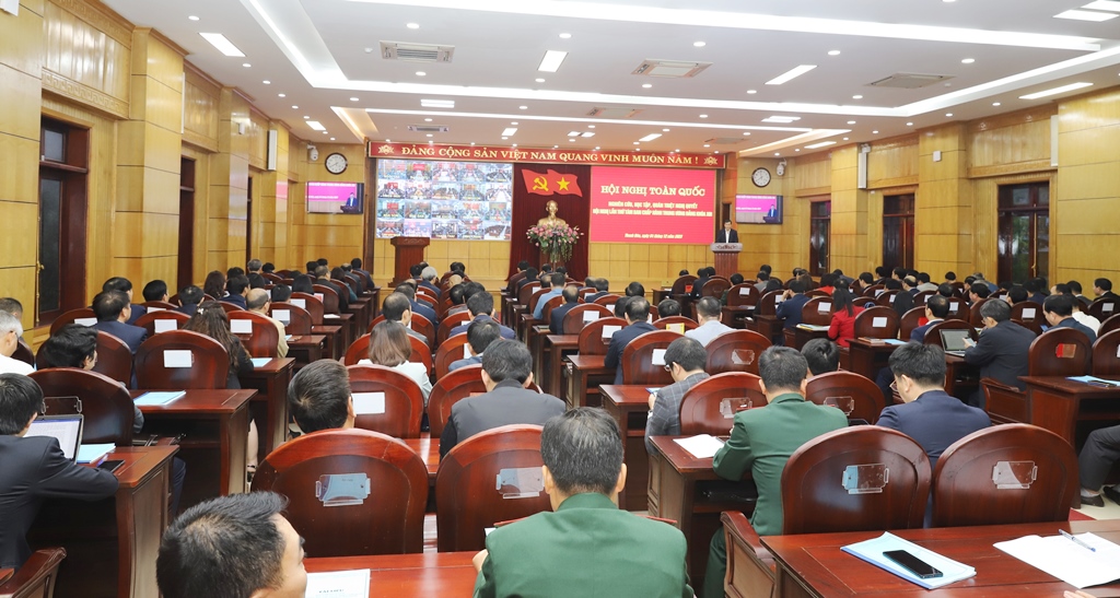 | Toàn cảnh hội nghị trực tuyến tại các điểm cầu trong toàn tỉnh. |