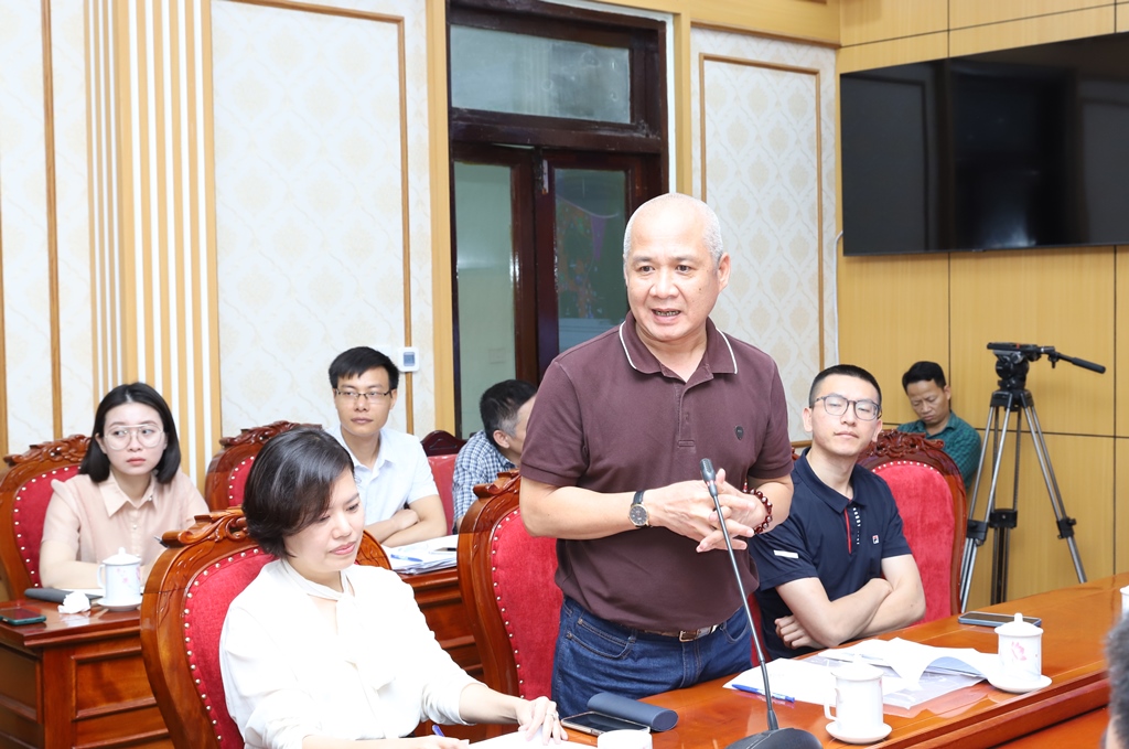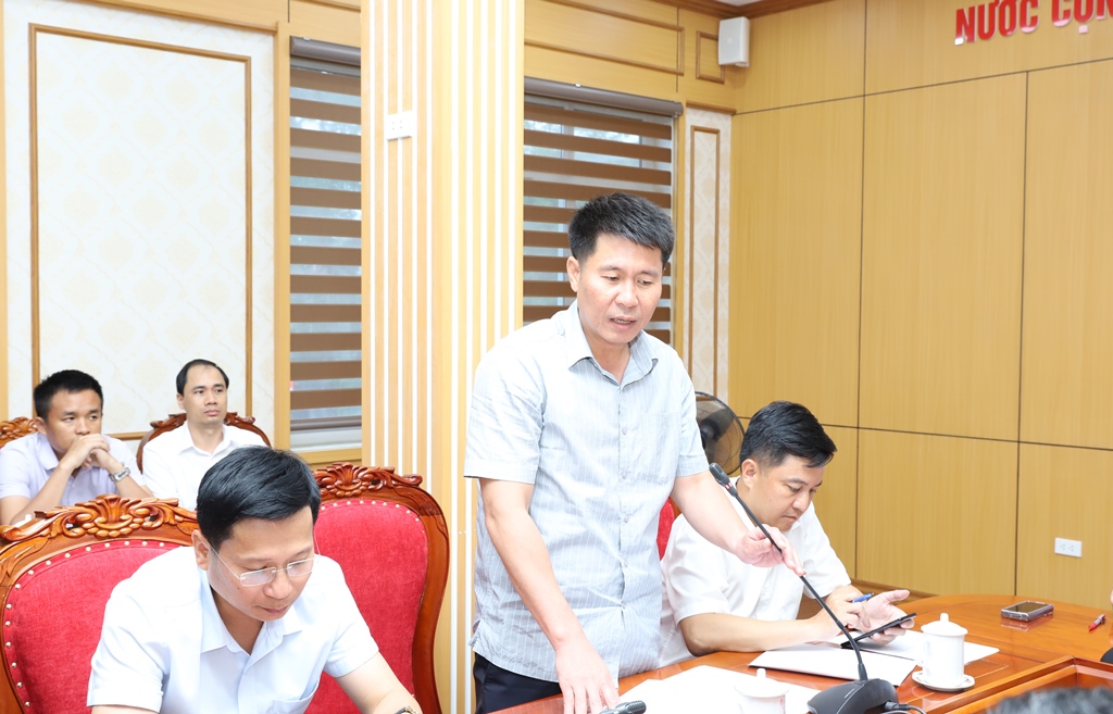 | Đại diện lãnh đạo các sở, ngành trao đổi ý kiến tại buổi làm việc. |