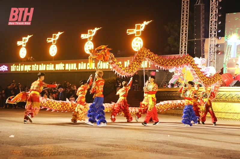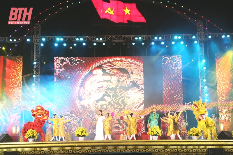 Chương trình chào đón Xuân Giáp Thìn 2024 là sự kết hợp giữa không gian sân khấu hoành tráng với âm thanh, ánh sáng hiện đại đã mang đến nhiều tiết mục nghệ thuật đặc sắc, đậm nét văn hóa truyền thống của dân tộc và quê hương Thanh Hóa.