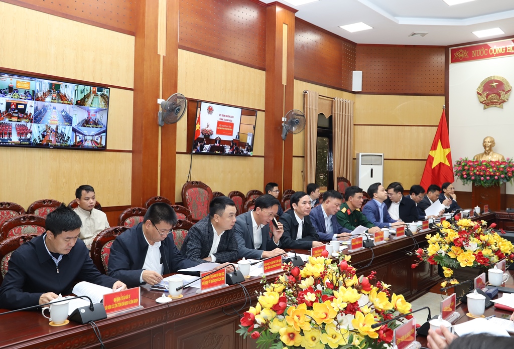 Toàn cảnh hội nghị tại các điểm cầu trực tuyến trên toàn tỉnh.