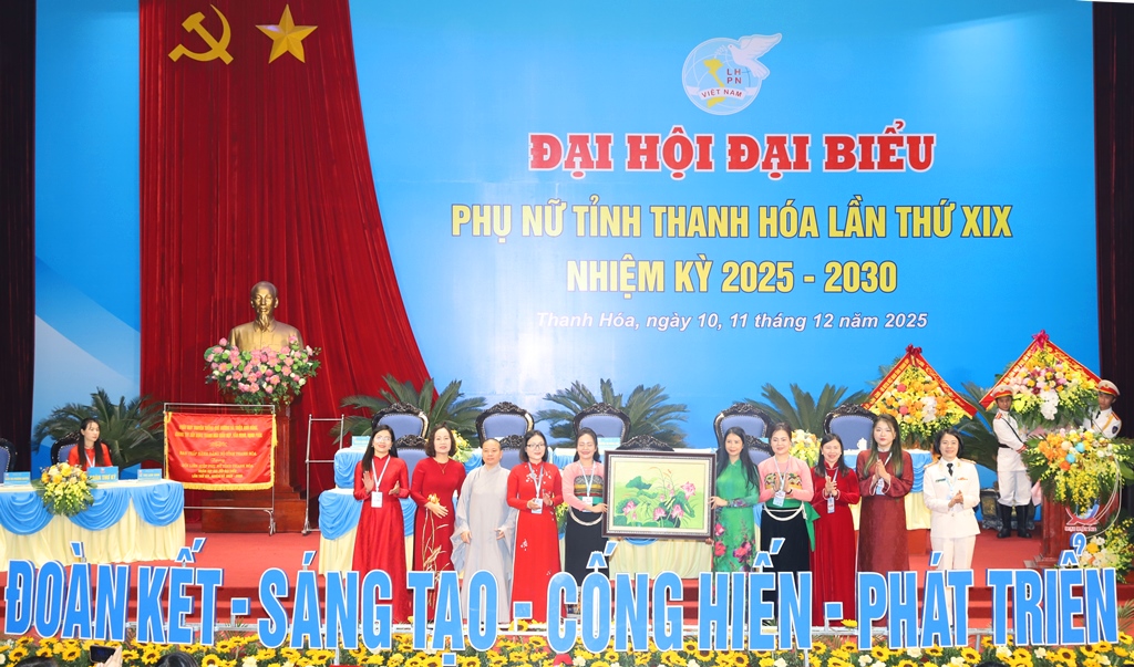 Nhân dịp này, Ban Chấp hành Đảng bộ tỉnh tặng Hội LHPN tỉnh Thanh Hóa Bức trướng với dòng chữ: “Phát huy truyền thống quê hương Bà Triệu anh hùng, chung tay xây dựng Thanh Hóa giàu đẹp, văn minh, hạnh phúc”. Đại diện lãnh đạo Trung ương Hội LHPN Việt Nam tặng hoa và bức tranh thêu chúc mừng Đại hội.
